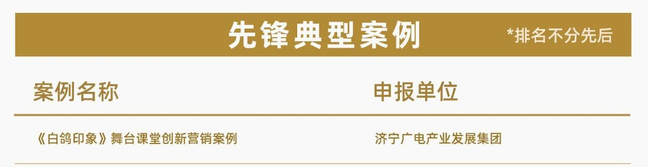 其中,济宁广播电视台报送的《《白鸽印象》舞台课堂》等三部作品获全国广播电视融媒体营销典型案例奖。